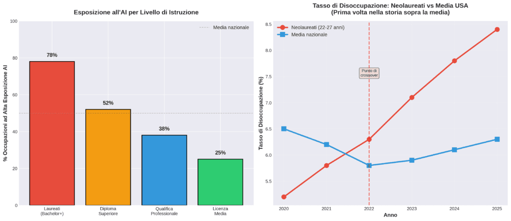 Per la prima volta nella storia, il tasso di disoccupazione dei neolaureati americani (22-27 anni) è superiore alla media nazionale. La laurea, che un tempo era il biglietto sicuro per una carriera stabile, non garantisce più nulla.